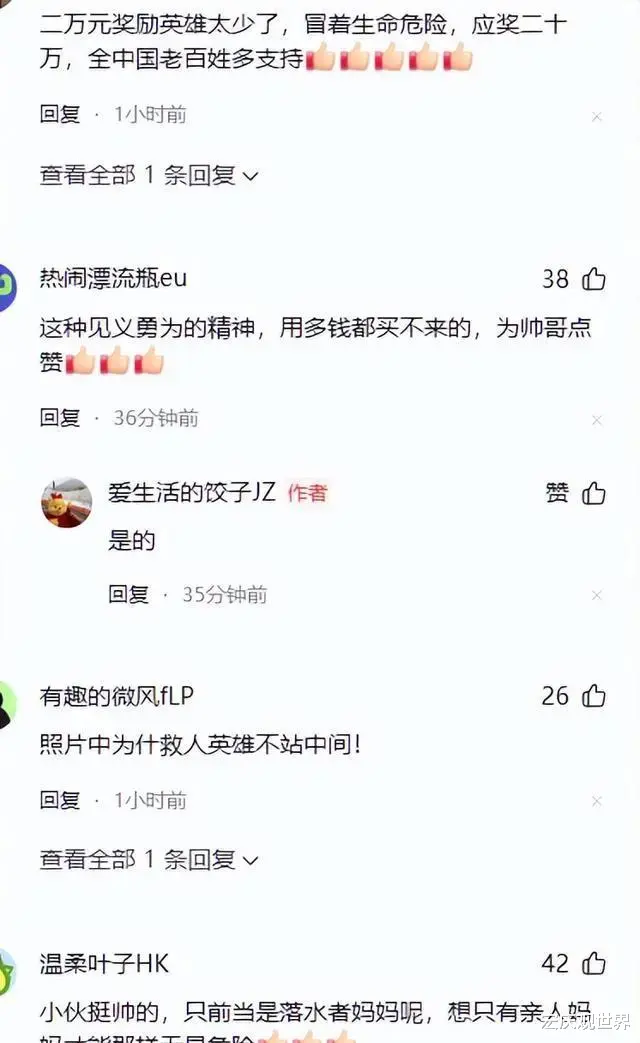 还有网友说,这种行为应该重奖,不然社会风气会变坏。说实话,这话我有点不同意。虽然奖励是好事,但这种见义勇为的行为,不应该只靠奖励来推动。如果大家都只是为了奖励才去做好事,那这个世界岂不是太功利了?英雄的行为,应该是发自内心的,而不是为了得到什么回报。奖励也是对英雄的一种肯定,但不能把奖励当成唯一的动力。