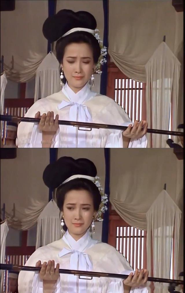 前期一身绿衣温婉端庄,与周瑜举案齐眉尽显大家闺秀的气度,后来周瑜离世她身披麻衣为他烧纸,真实演绎了什么叫“要想俏,一身孝”。