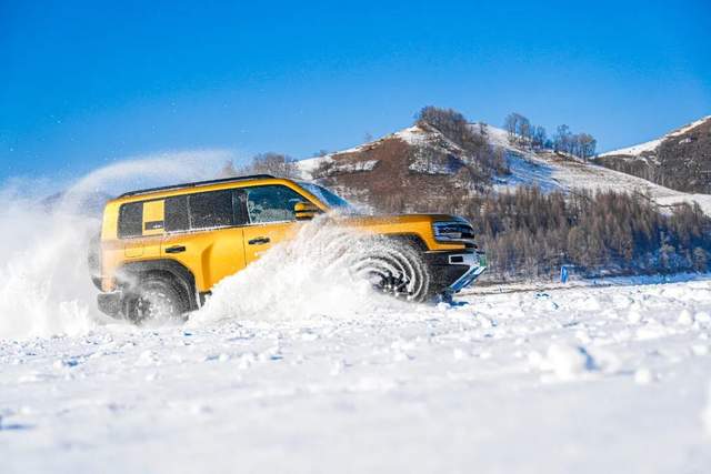 此次松花江滑冰马拉松挑战赛上,还有像方程豹豹5,搭载的DMO越野专用混动架构,即便在这种极寒环境下,也能够有持续的高性能动力输出,在冰天雪地的松花江上表演雪上驰骋、漂移等操作,将现场速度与激情的氛围直接拉满。