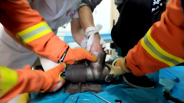 8月12日12时14分,遵义市红花岗区外环路朱家湾一作坊内,一女子在操作压面机时,手掌不慎被卷了进去,消防救援人员到现场后对揉面机外壳等保护装置进行拆卸,经过约15分钟的紧张救援,成功将女子被卡手指取出。