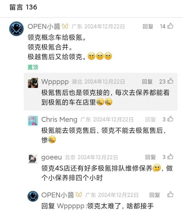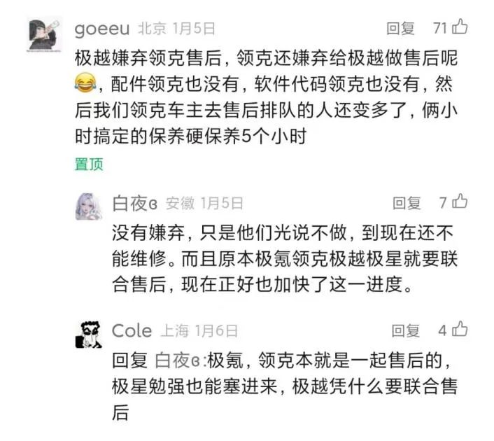 “极氪能去领克售后,领克不能去极氪售后”,有网友抱怨领克对极氪售后的单向开放。
