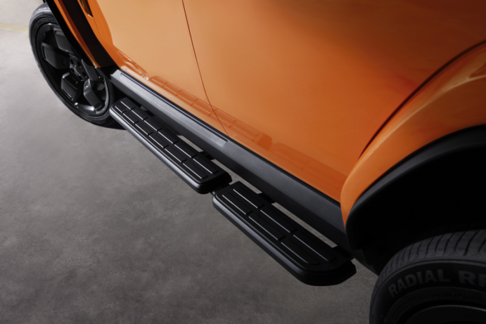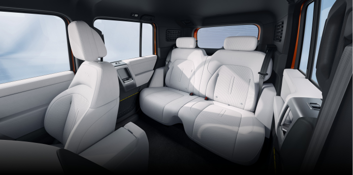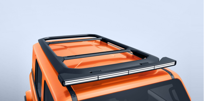 方盒子车身、圆形大灯、分体式侧踏板、C柱盲窗、外凸式轮眉、外露式前后保险杠等经典越野元素,在流线圆润为主流外观的钢筋混凝土城市里,显得阳刚硬朗、棱角分明。