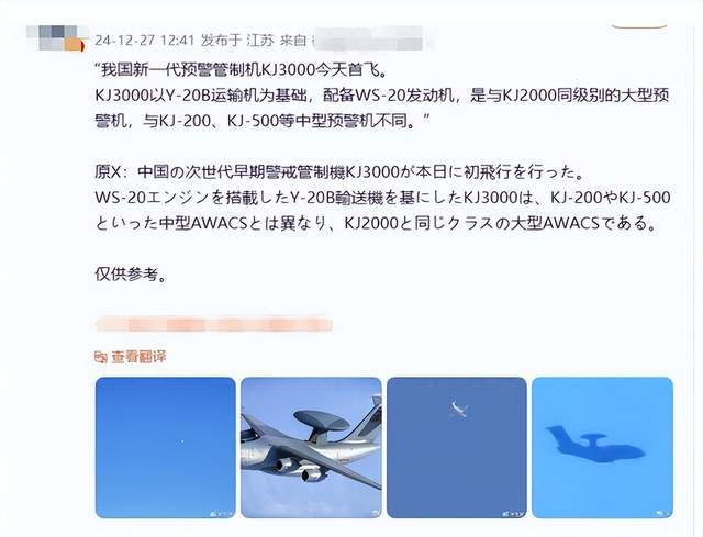 2024年12月27日,全球第一款“第四代”预警机空警-3000出现在西安阎良机场上空,网友拍摄到了飞机照片并引发热议。