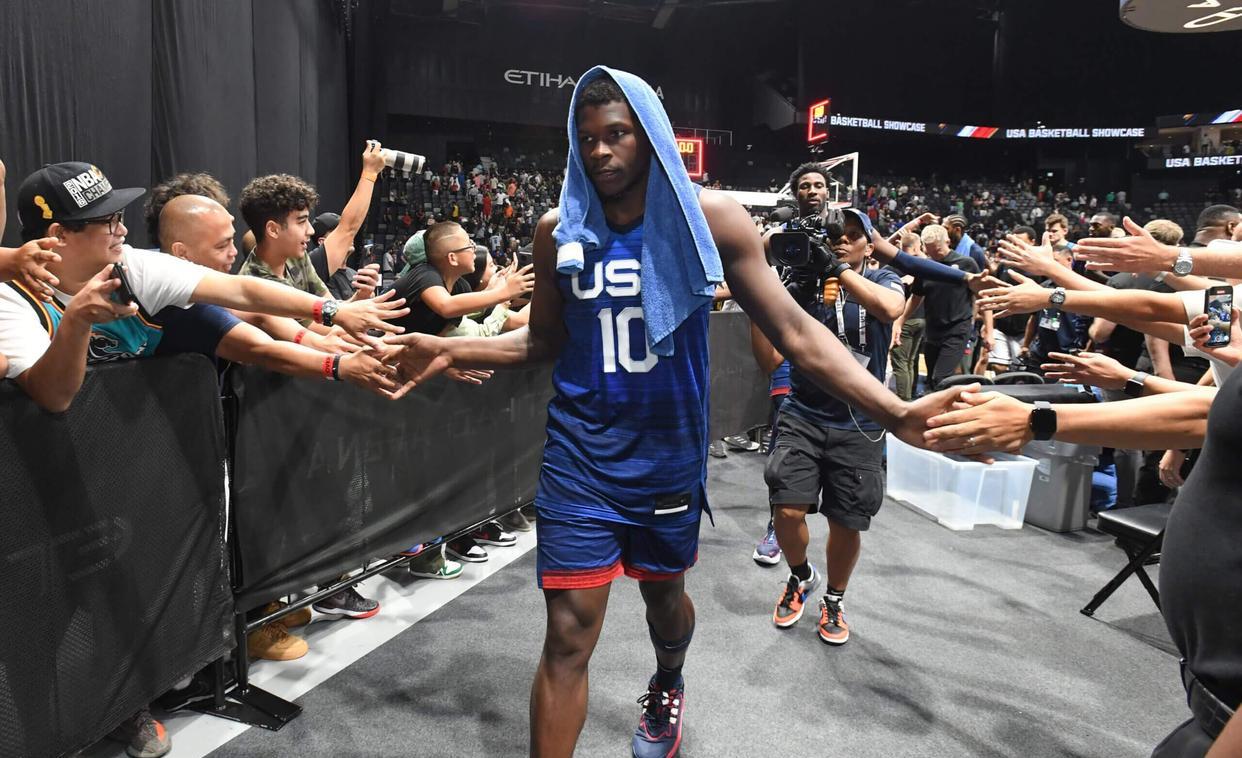 在美国队在世界杯前的热身赛中,爱德华兹的发挥十分优异,俨然已经成为了美国队的头号得分手。然而在美国队训练营开始时,球队的首发阵容是布伦森、卡梅隆-约翰逊、布里奇斯、英格拉姆、贾伦-杰克逊。