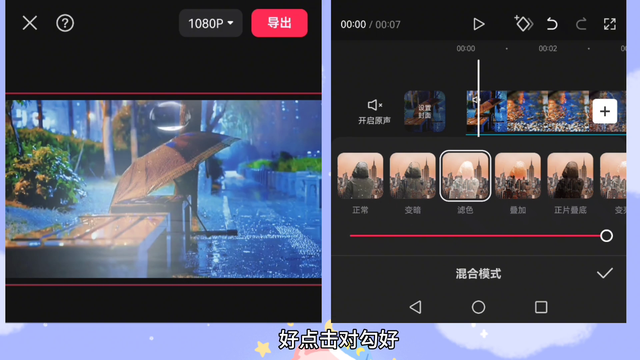 2. 进来中找到画中画,在素材库里面添加水滴素材技能,点亮画中画,双手扩满全屏。