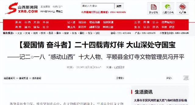 山西日报2019.11.21——记二○一八“感动山西”十大人物、平顺县金灯寺文物管理员冯开平参