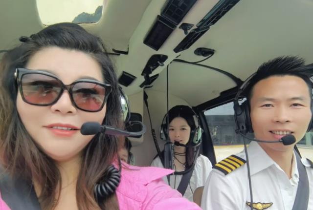一家五口人站在直升机前,拍下了登机前的最后一张全家福。