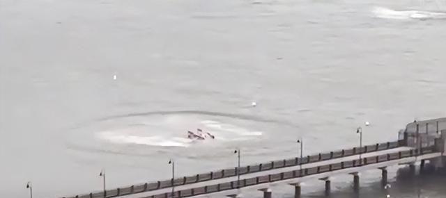 他们乘坐的直升机在众目睽睽之下,并以令人惊恐的姿态急速坠向哈德逊河。