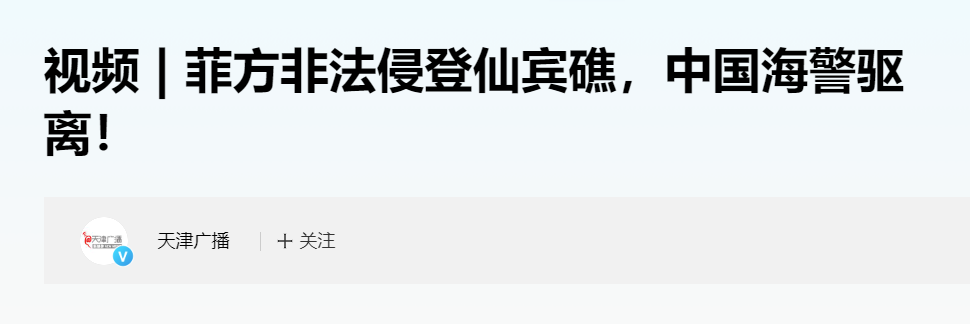 参考资料:观察者网在2024在6月14日关于《视频 | 菲方非法侵登仙宾礁,中国海警驱离!》的报道