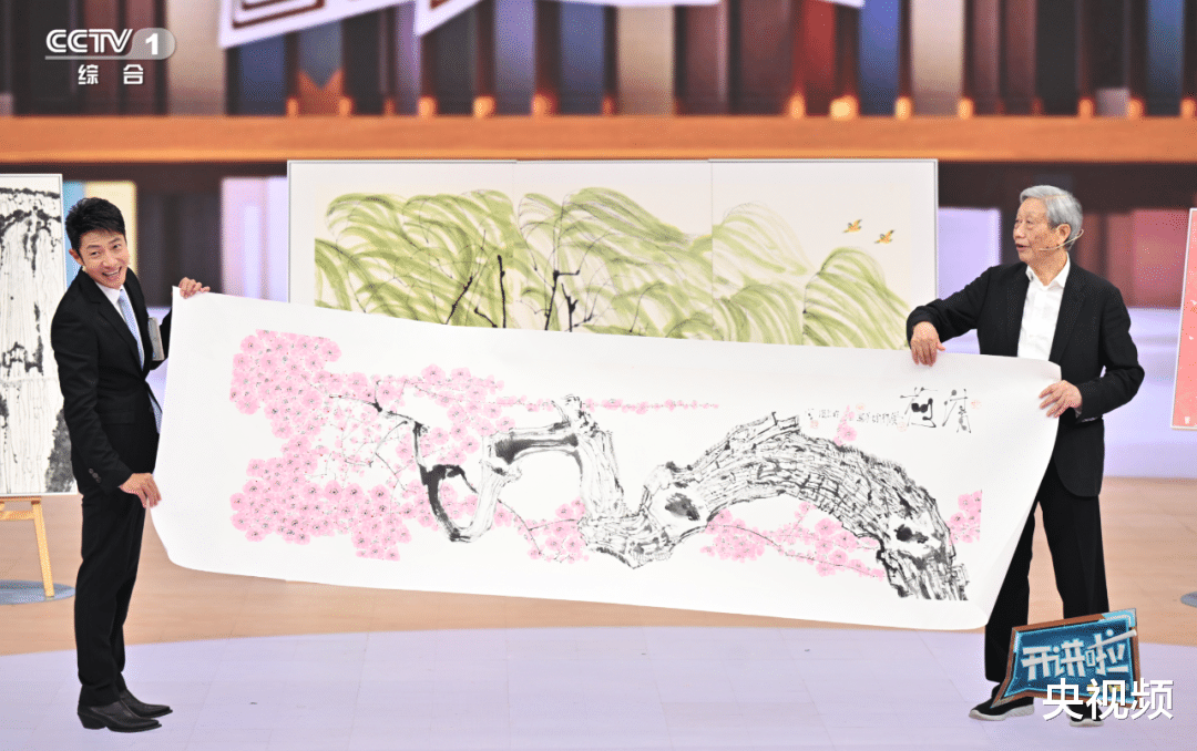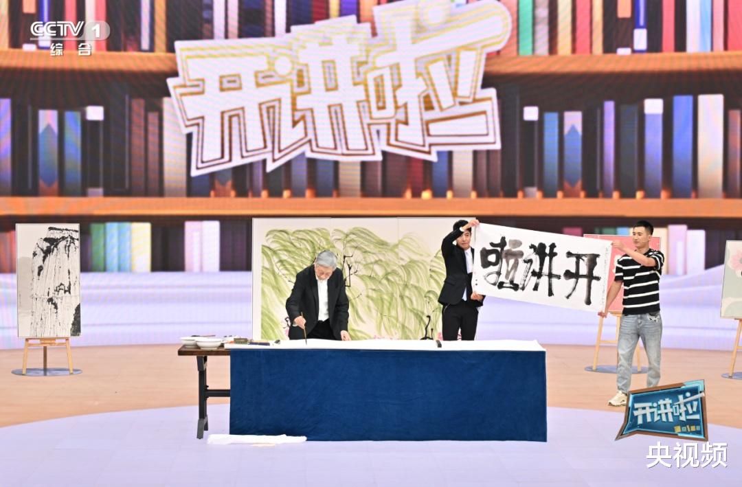 陈家泠先生还是一位文房四宝界的发烧友,宣纸、颜料出了新品,他都迫不及待想试用一下。在提问环节,来自宣城的青年工匠带来了自己制作的宣纸,陈老现场挥墨测评,为《开讲啦》留下了珍贵的书法作品。陈老讲,中国的一种审美和哲理叫“天人合一”,在宣纸上画画,其实是你在画它也在画。宣纸对于绘画来说是土壤,苹果种得好不好,离不开优质的土壤。他现场鼓励青年,书画是中华文明的重要符号,而铸造中华民族的新文明,需要好的新材料,年轻人要大胆创新,研发新的美术材料,为中国的艺术家提供更多创作的空间。