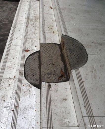 乍一看这个楼梯还挺有个性的,仔细一看让人眼前一黑。到底是什么样的企业级理解能把标注直接刻在楼梯上啊?甚至为了完美地画出这个圆,还煞费苦心地衡量好了三个台阶之间的距离。同样逆天的还有这个井盖:技术确实一流,就是努力错了方向。