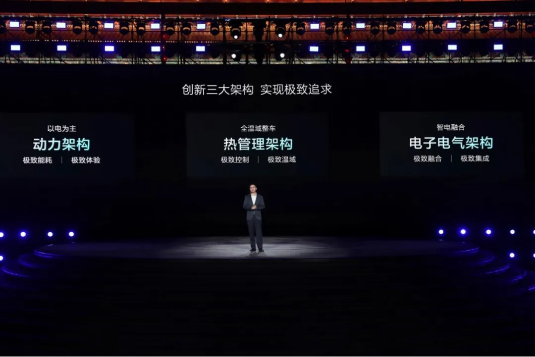 智电融合电子电气架构,集成行业首个插混动力域控七合一,实现了功能复用,功率密度提升18.3%。行业首创芯片集成,实现VCU(电压控制单元)和双MCU(电机控制单元)三脑合一,芯片算力提升146%,充分提升整车的集成度和性能。