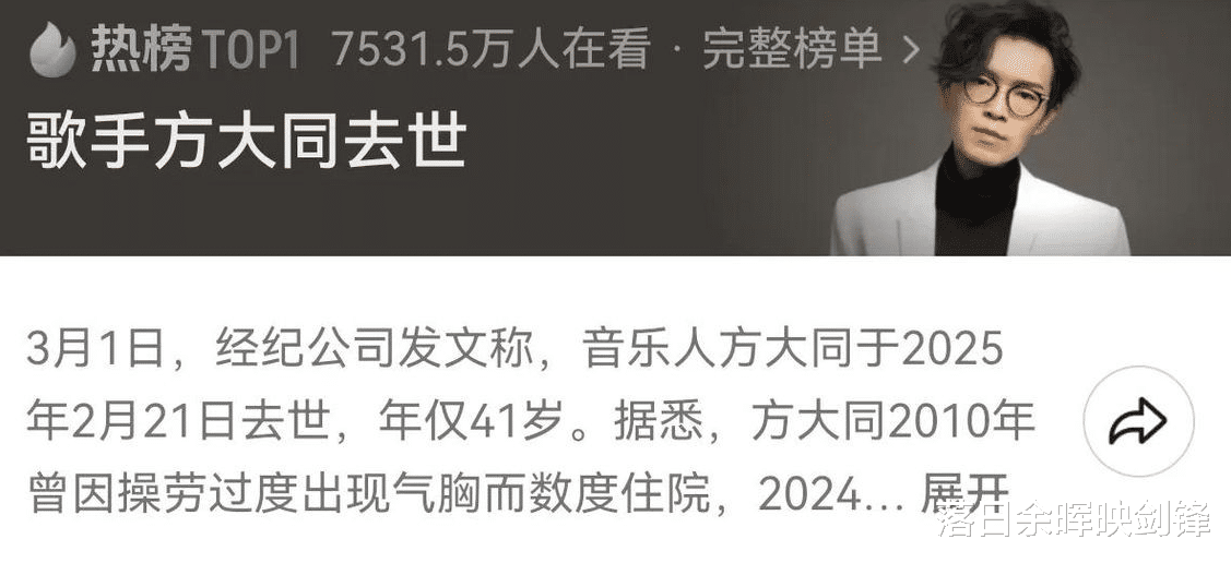 微博、朋友圈、各种自媒体文章,到处都是“方大同去世”的消息,看得人心里发慌。