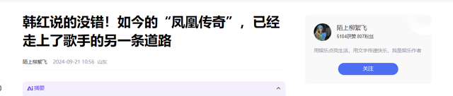 本文信源:陌上柳絮飞《韩红说的没错!如今的“凤凰传奇”,已经走上了歌手的另一条道路》