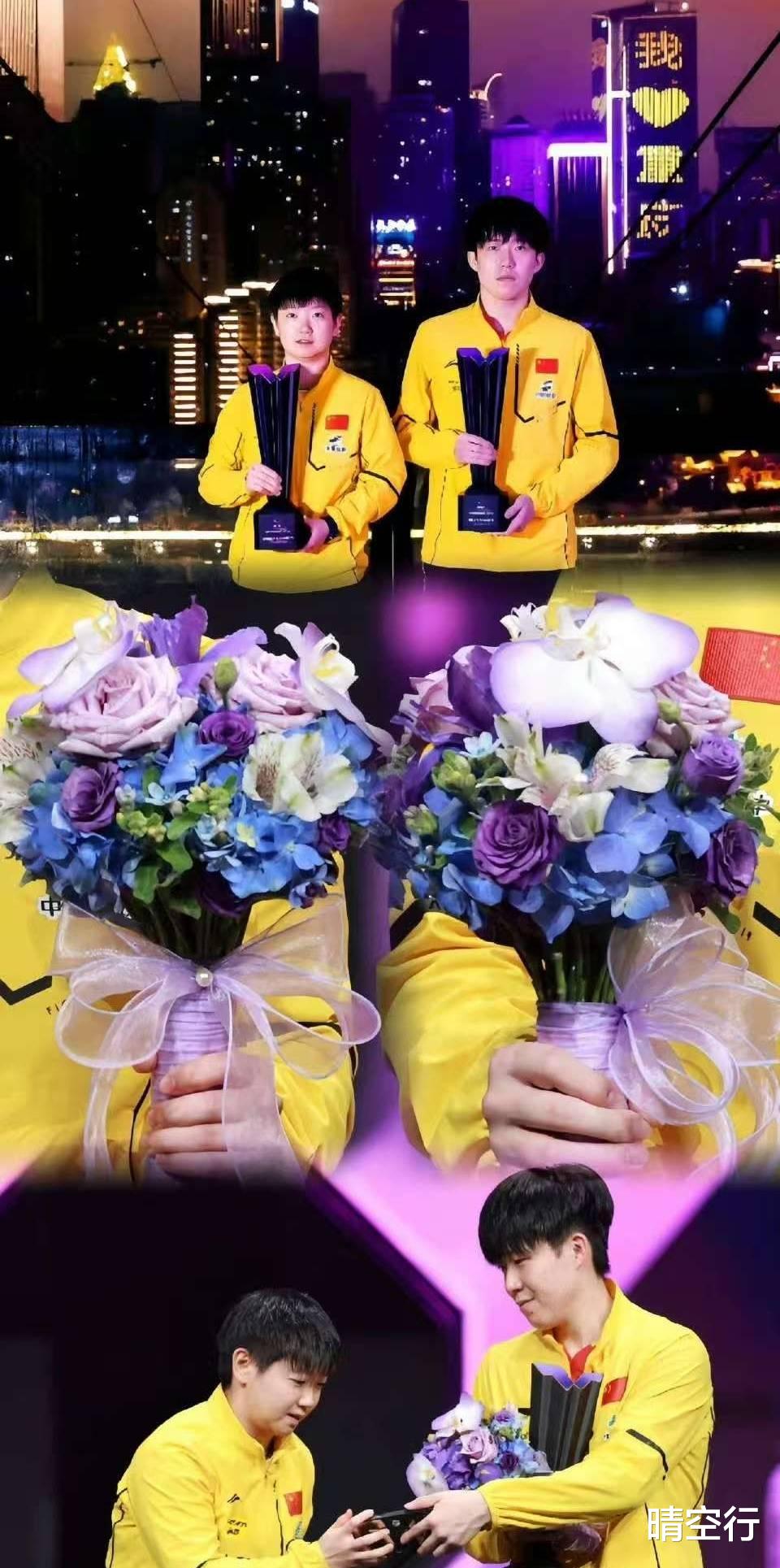 在颁奖合影环节,孙颖莎敏锐地察觉到了王楚钦的情绪变化。