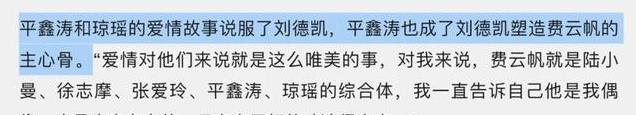 从此刘德凯对费云帆有了实感,他心目中的费云帆,就是平鑫涛+琼瑶+张爱玲+陆小曼+徐志摩的综合体。