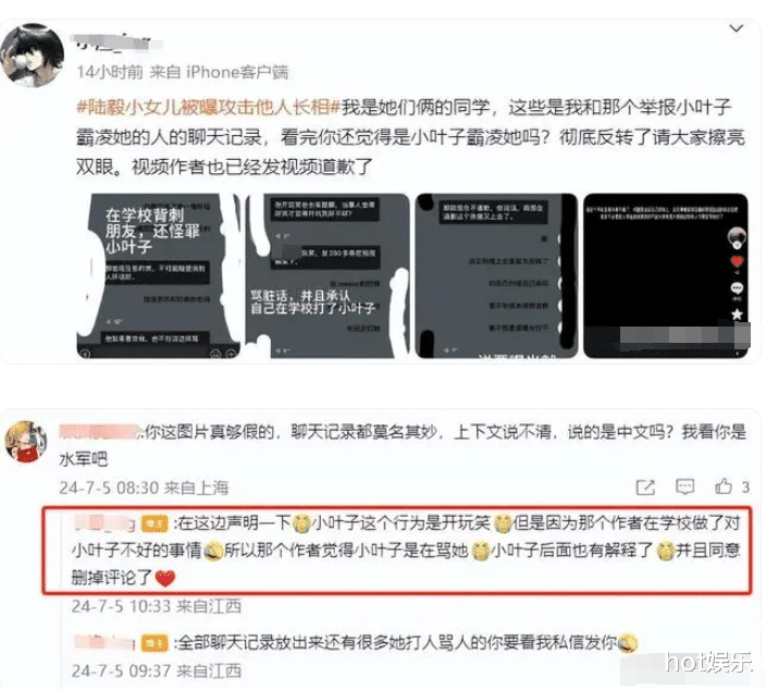 有人质问陆毅,小叶子真的无心攻击同学的长相,为何一口气发十几条?也同样遭到了陆毅的删除拉黑。