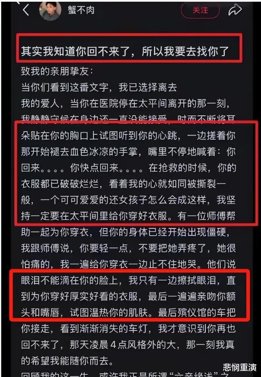 33岁的谢家振,一个名字,一段让人唏嘘的故事。四个月前,26岁的妻子因病离世,留下他独自一人,在人世间徘徊。如今,他追随妻子而去,留下一封千字情书,字里行间,是无尽的思念,是刻骨铭心的爱,也是无法释怀的痛。 这封情书,是爱情的挽歌,也是对生命的叩问。 我们不禁要问,这究竟是怎样的爱,才能让他做出如此决绝的选择?