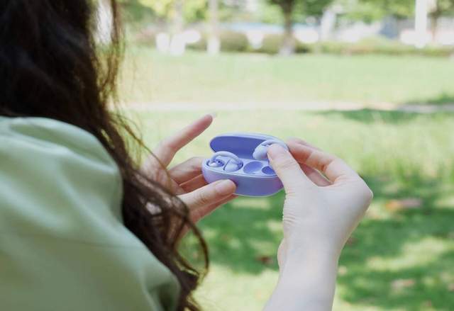打开耳机仓,就能看到两只可可爱爱的耳机了。花花是第一次用开放式耳机,感觉看起来特别像耳夹,为啥是耳夹,因为花花没有耳洞,偶尔会买耳夹来当装饰品,这个耳机就完全像一个装饰品。