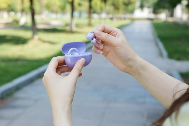 打开包装后,就能看到设计独立的耳机收纳盒,也是花花喜欢的紫色!