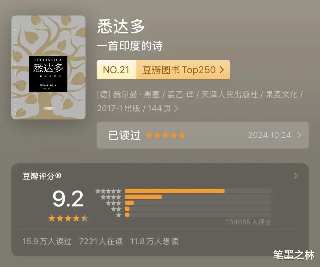 《悉达多》并非是佛陀的故事,它讲述了一个人的一生,千万寻常人亦会经历的一生。