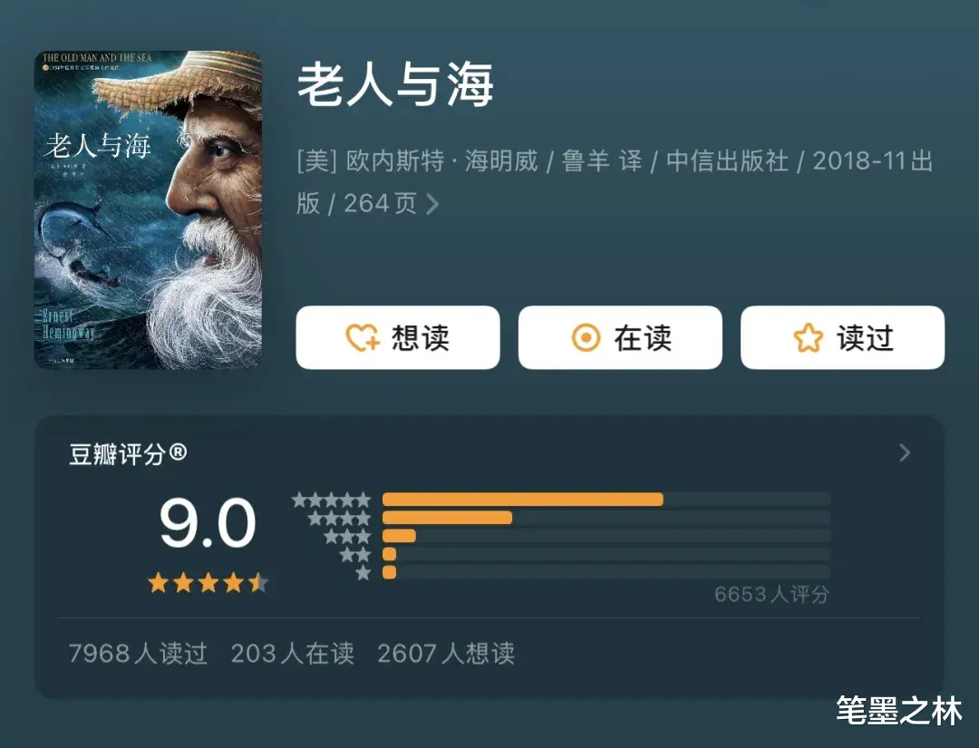 ◆ 自1954年荣获诺贝尔文学奖至今,《老人与海》风靡全球,横扫每个必读经典书单,征服了亿万读者;据作家榜官方统计:截至2017年1月,113位诺贝尔文学奖得主作品中文版销量排行榜,海明威高居榜首,总销量突破550万册。