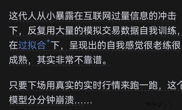 缺乏社会化,原子人的集体迷茫,关键是这个年纪大家都不老练,但是00后认为自己很老练,还有 碰到跟自己意见不同的,不要上来就表现的很急。正确的,就是大量真真假假的信息混在一起,缺乏实践经历验证,导致决策模块过载了。我知道自己有这个毛病,但是还是时不时忍不住胡思乱想。