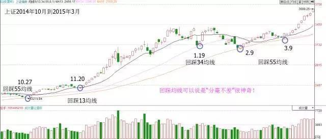 “135”均线战法擒牛股三均线指的是:13 34 55这三条均线