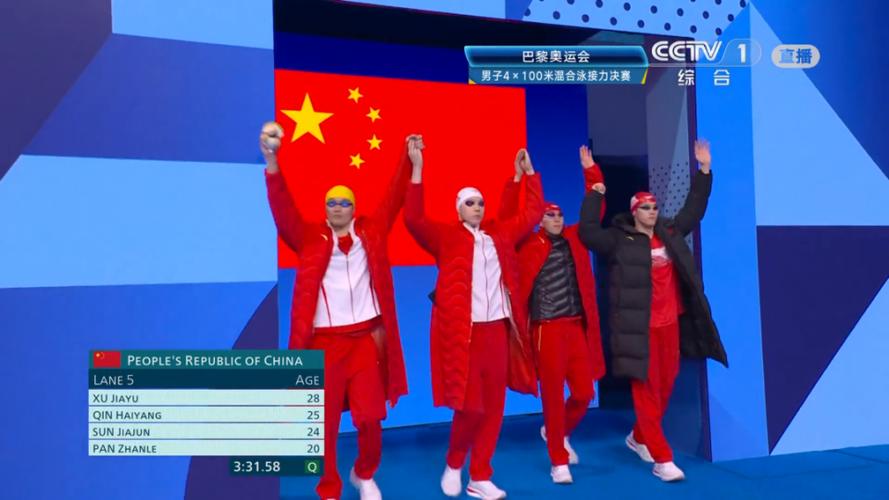 男子4X100米混合泳接力决赛,潘展乐、孙佳俊、覃海洋、徐嘉余以3分27秒46夺得金牌,也是中国代表团第19金;美国队以3分28秒01获得银牌;法国队以3分28秒38获得铜牌。