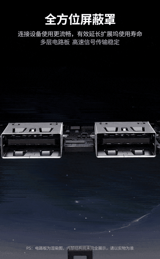 金属屏蔽罩 使用更稳定值得一提的是这款绿联CM511/15597扩展坞内部核心区域PCBA模块采用了金属全方位屏蔽罩全包裹,可以防止外界电磁波对扩展坞在数据传输,投屏使用时造成的异常干扰和抗静电,能最好的提升使用的稳定性。光这一点来说绿联在成本上是下了血本了,因为这种设置市面上还是极少的,足以看出绿联的用心。