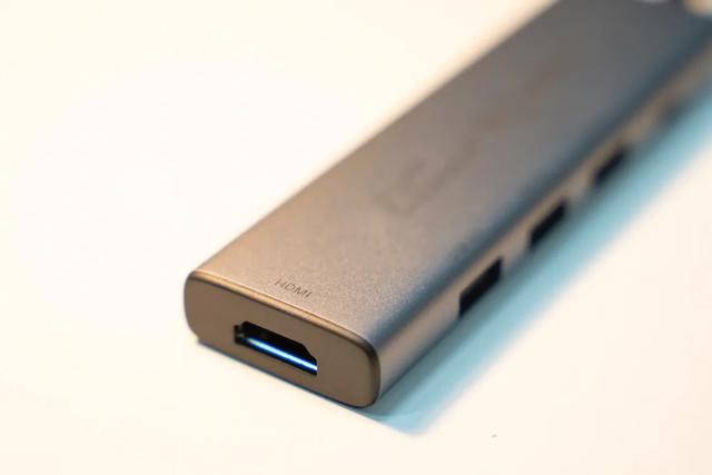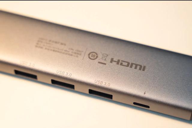 五合一每个接口处都有英文标识,窄边端口是HDMI/VGA接口,均可实现视频传输。这对于在家里用手机笔记本连接大屏电视看影音和游戏会更过瘾,而工作中这样的好处则是可以通过笔记本电脑直接连接大屏进行多种办公使用。