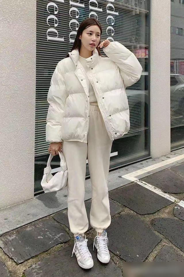 不过在选购白色羽绒服时还是要巧妙搭配,避免选择一些会很显胖的款式。