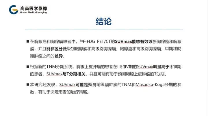 本研究还发现,SUVmax可能是预测前纵隔肿瘤的TNM和Masaoka-Koga分期的参数,有助于决定患者的治疗策略。