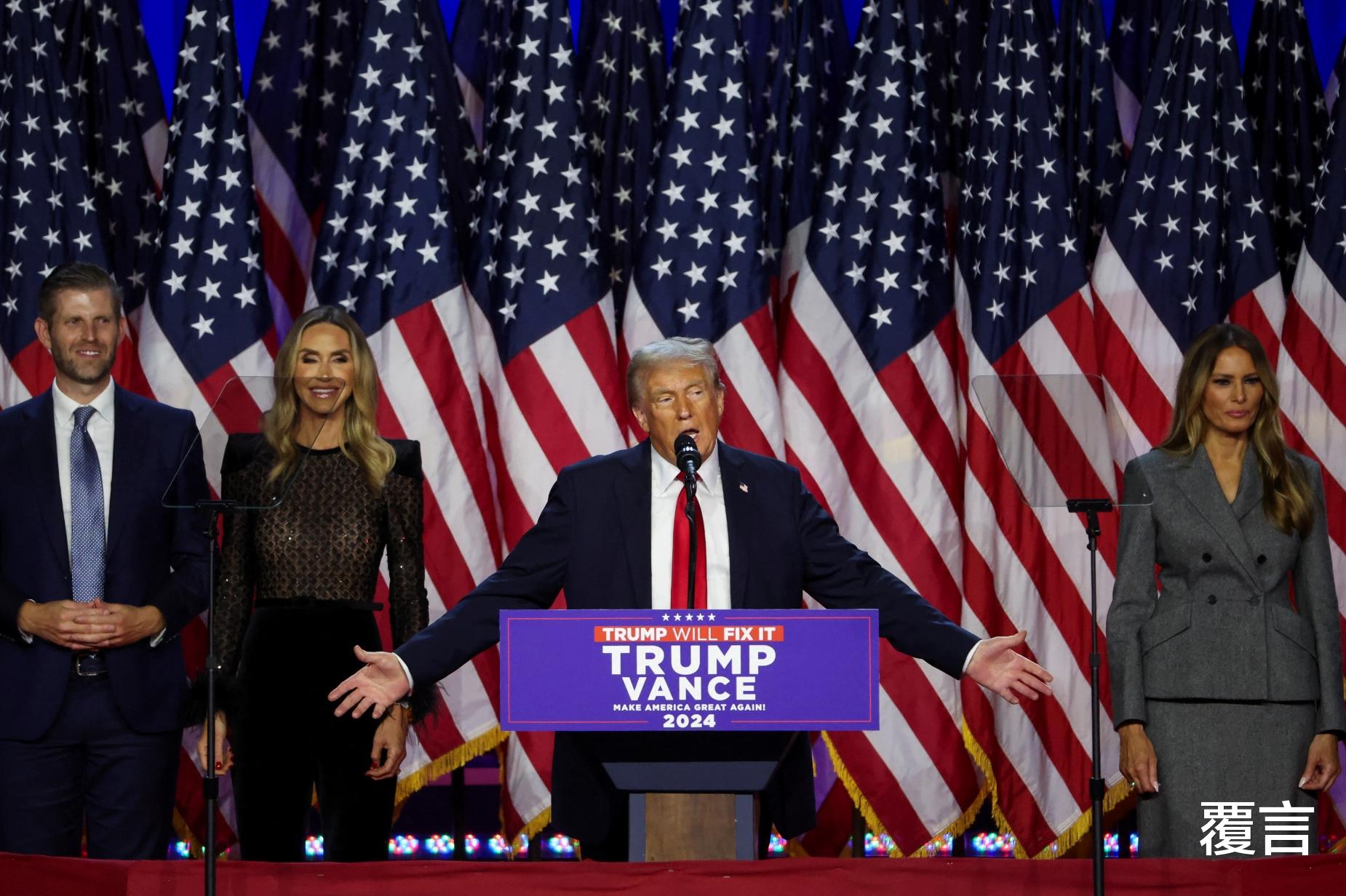 根据福克斯新闻的报道,特朗普已经获得足够的270张选举人票,自行宣布当选第47届美国总统。他对支持者表示,“美国赋予了我们前所未有的、强大的使命”,“我们创造了历史”。