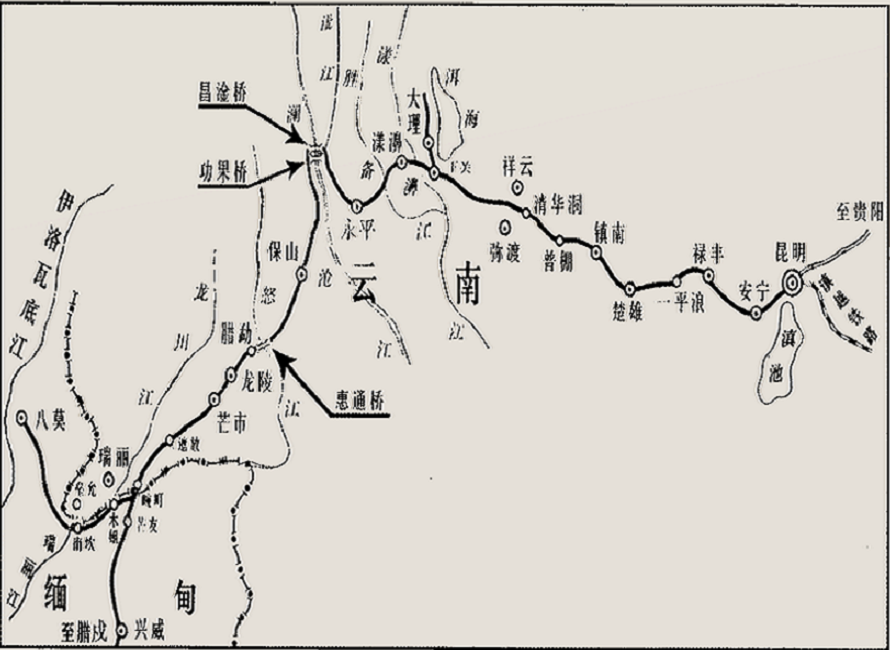 滇缅公路,自中国云南延伸到缅甸境内,连接着云南昆明与缅甸腊戍,全长约1100多公里。
