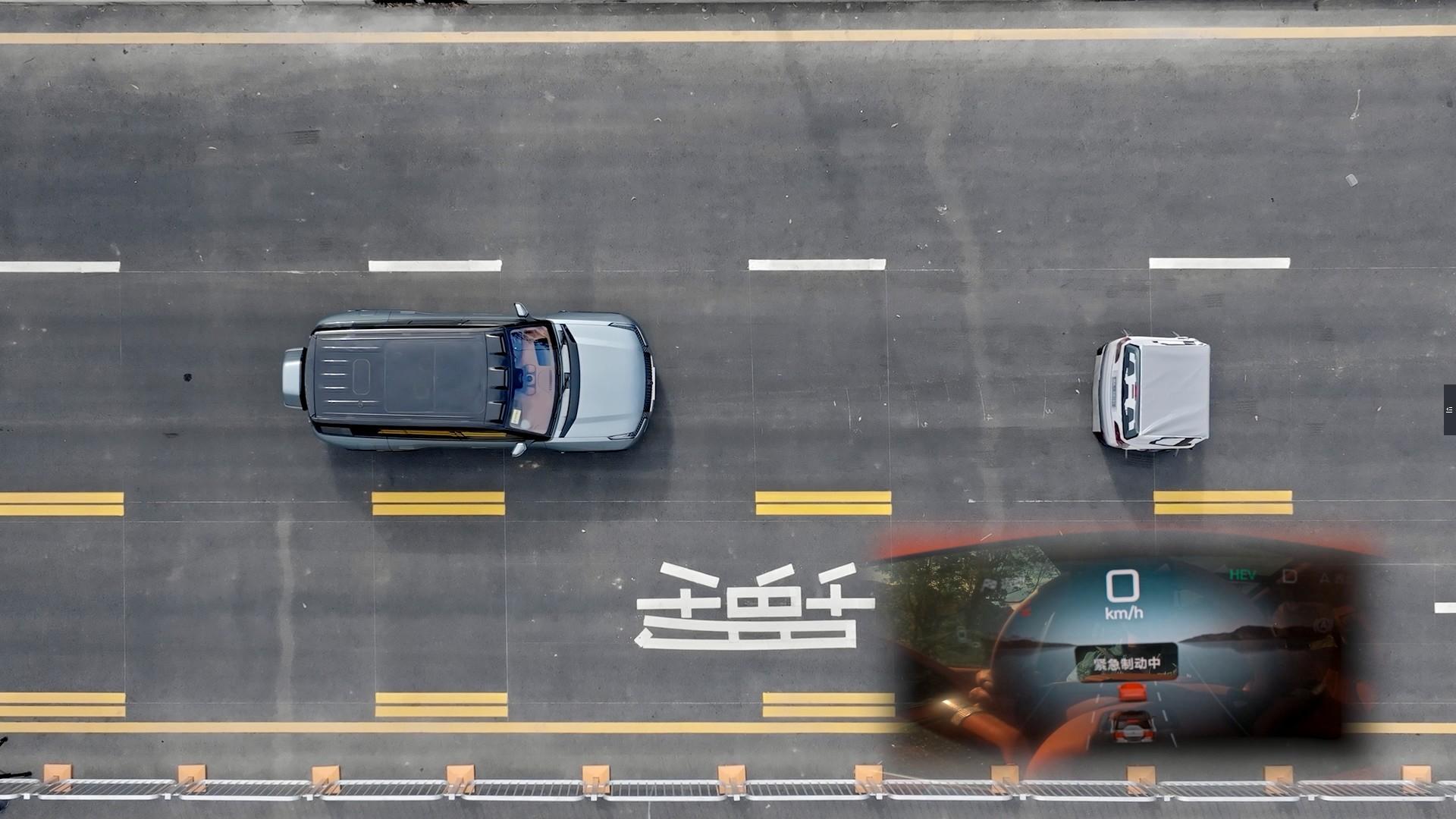 从实测视频中看,搭载了比亚迪AEB系统的仰望U8在高速行驶状态下,能及时面对前方出现的静止车辆进行刹停,刹车距离非常短且车况感受良好。