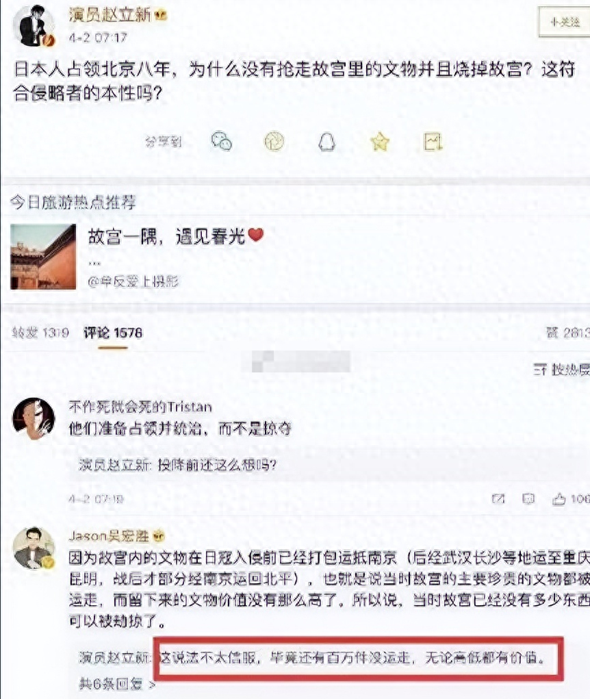 2019年,赵立新在社交平台上发布了一条颇为困惑的言论,质疑英法联军火烧圆明园的原因,激起了网友们的愤怒,因为这一历史事件在中国历史上堪称耻辱之一。