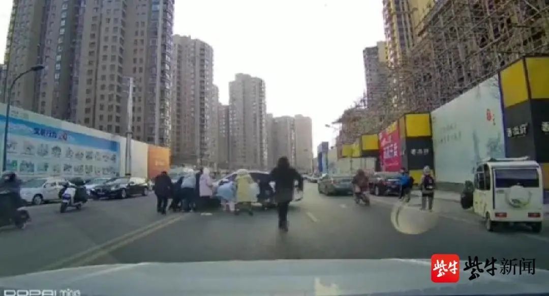 众市民跑过去抬车救人 现场一位目击者介绍:“当时驾驶员不在状态了,吓得好像魂不附体的那种,把小孩抱在怀里,反正驾驶员吓得不轻。”