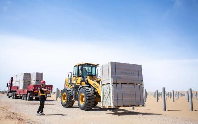 2024年5月31日,巴彦淖尔市磴口县,一辆辆满载晶澳科技n型组件的货车顺利抵达“乌兰布和沙漠东北部新能源基地先导工程100万千瓦光伏发电项目”的现场。这是该项目首批组件到场,预示着乌兰布和沙漠风光大基地的建设已经拉开帷幕,开始提速启航。