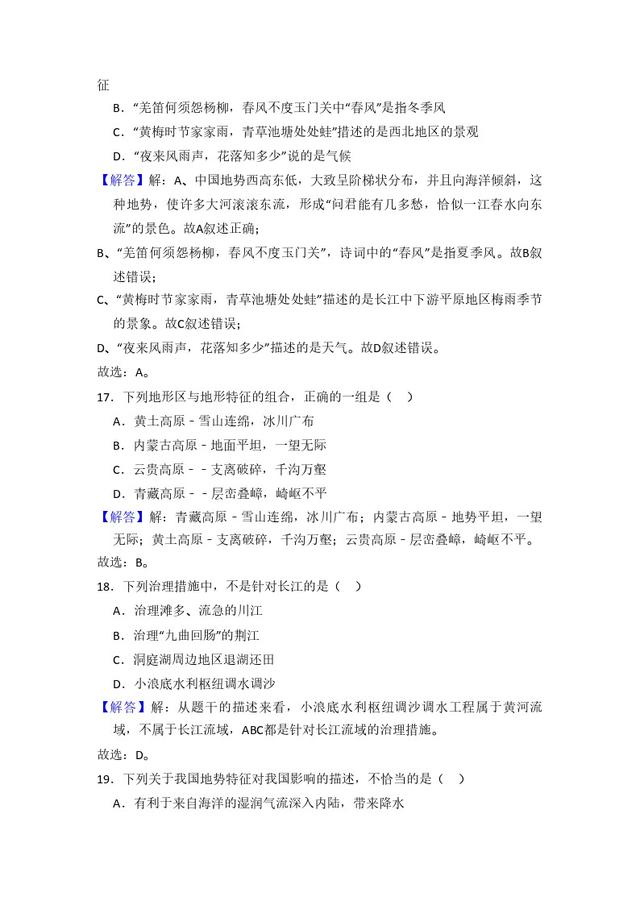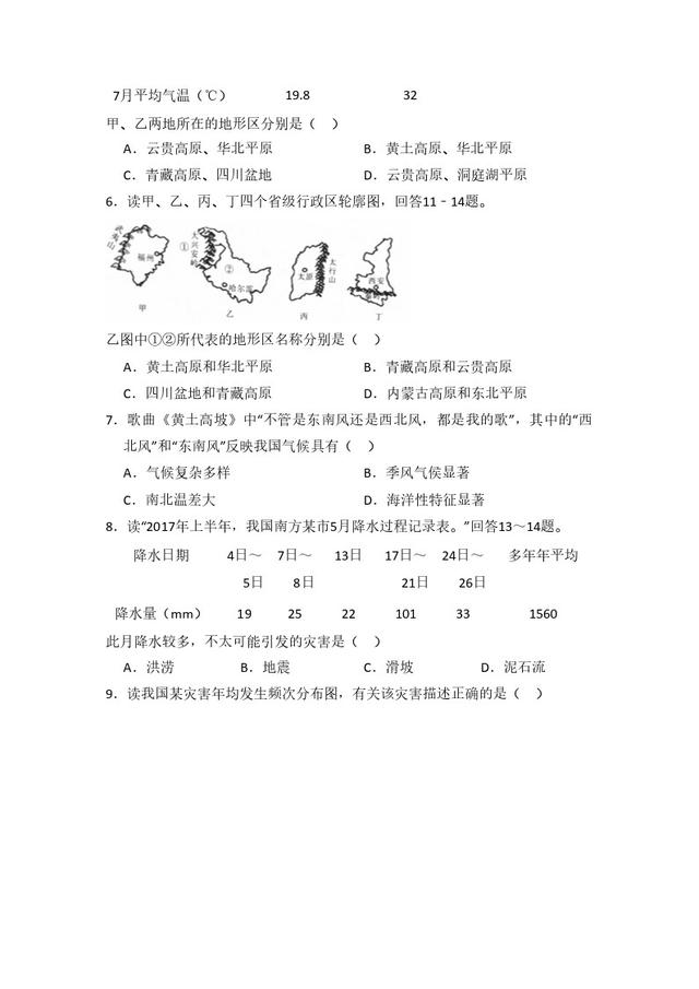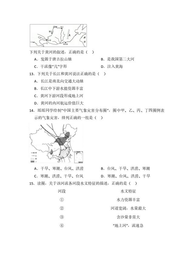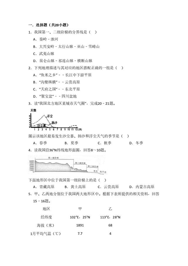 初中地理人教版八年级上第二章测试题