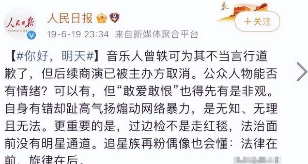 人民日报再评曾轶可事件:法治面前没有明星通道 上游新闻 2019-06-20