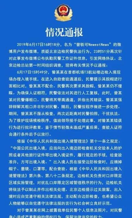 事情发生在19年6月,当时曾轶可在北京机场安检时与工作人员发生了冲突,一般这种事情也就是一会就过去了,但是她却将这件事情发在了网上,称自己在北京首都机场入境时遭到了工作人员的 “刁难”。