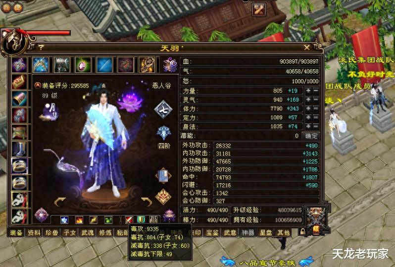今天给大家介绍的,就是一位开局先充1万元,后续三个月奋力“白嫖”争取满六的恶人谷老玩家,先看看最新面板:评分近30万,血量90万,命中7.4万,闪避1.7万,会心攻击1342,会心防御327,主毒攻击9335!