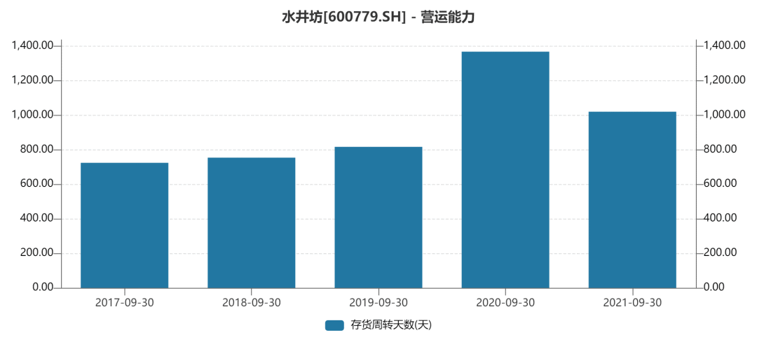 存货周转天数越长,意味着商品变现速度越慢,存货占用资金的时间越长。从侧面来说,水井坊的酒可能没这么好卖。
