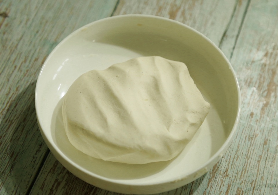 5、取适量面团,中间掏空,像包汤圆一样包上馅料,然后封口。