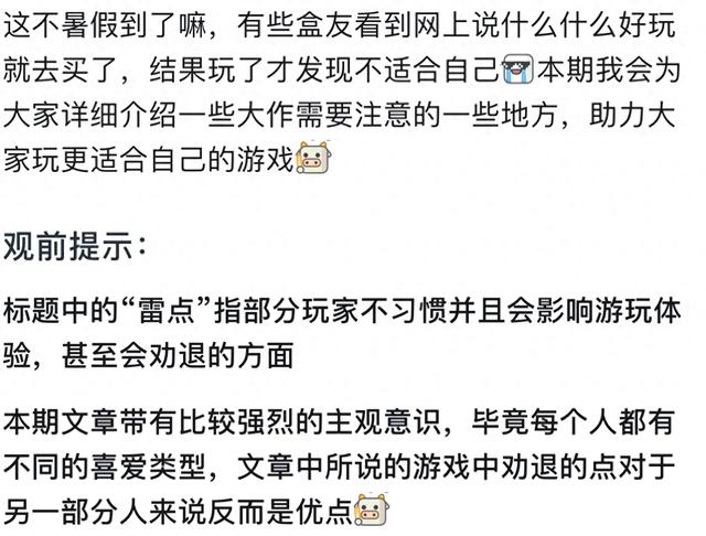 写的很好,我觉得这才是游戏测评应该有的思路。既有对游戏本身玩法,设计,美术等方面的客观评价;也有自己游玩过程中主观感受到的困惑,恶心,难受的设计。对任意一款游戏都不能简单且二极管式的评价神作或者一坨。如果作者能展开聊聊每款游戏的优缺点就更好了。