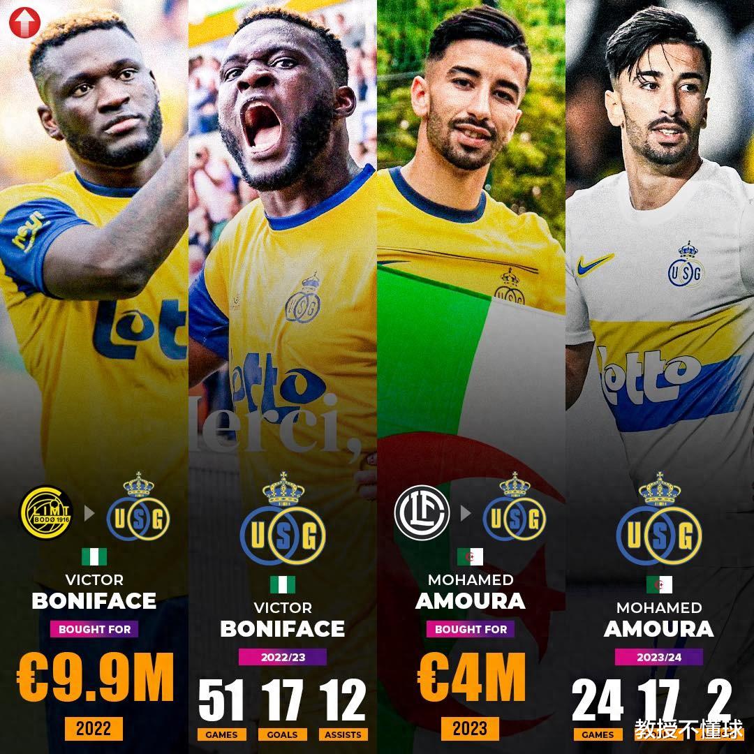 就拿博尼法斯来说,2022年8月,圣吉罗斯以610万欧元的价格,从闪耀哥手里买下这名21岁前锋。然而,博尼法斯在圣吉罗斯的一个赛季,总共出场51次,打进17球并完成10次助攻。最终勒沃库森以2050万欧元的转会费,从圣吉罗斯买下博尼法斯。