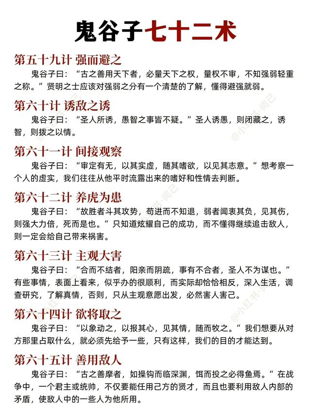 鬼谷子七十二术:纵横古今的智慧之道。网友总结的不错,又有注解