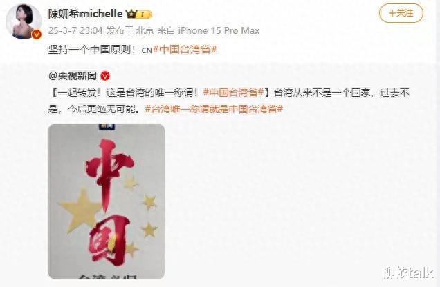 无论是2017年南海仲裁案时在外网的据理力争,还是2019年凌晨三点转发支持香港警察的动态,都展现了她坚定的政治立场。