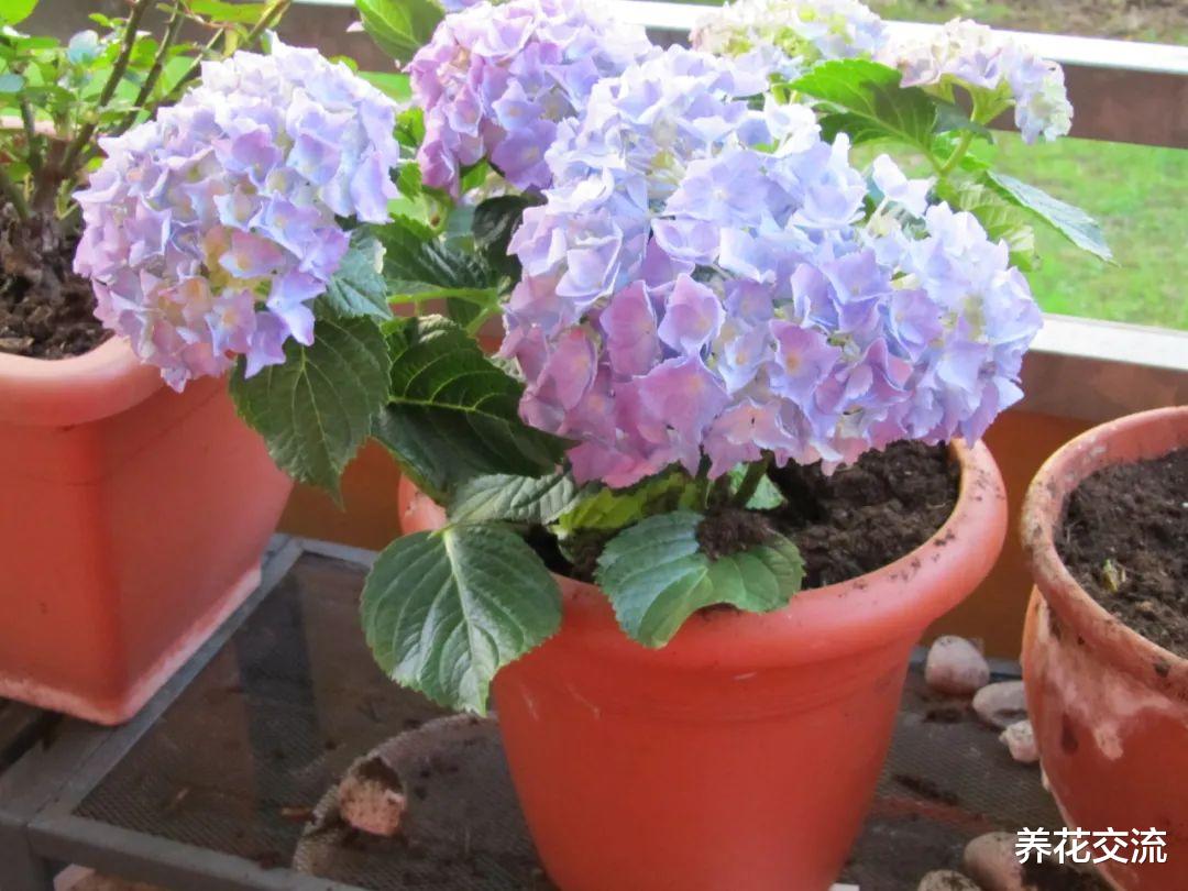 即便是在空气流通比较好的阳台上,也是一面靠墙的,而在院子里则是四面通风,院子或露台上的通风肯定比阳台更好,养护盆栽绣球也会更容易。